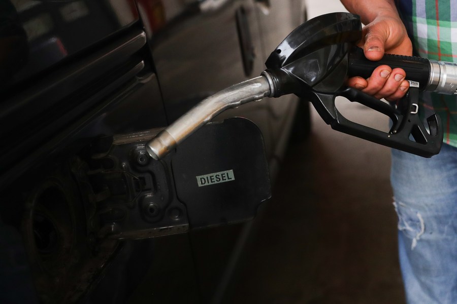 A man refuels his vehicle at a petrol station in Brussels, Belgium, March 29, 2022. (Xinhua/Zheng Huansong)
