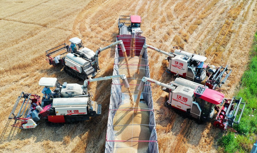 By Monday, the country had finished reaping winter wheat on 167 million mu (about 11.13 million hectares) of farmland, accounting for around 55 percent of its total winter wheat, according to the Ministry of Agriculture and Rural Affairs.