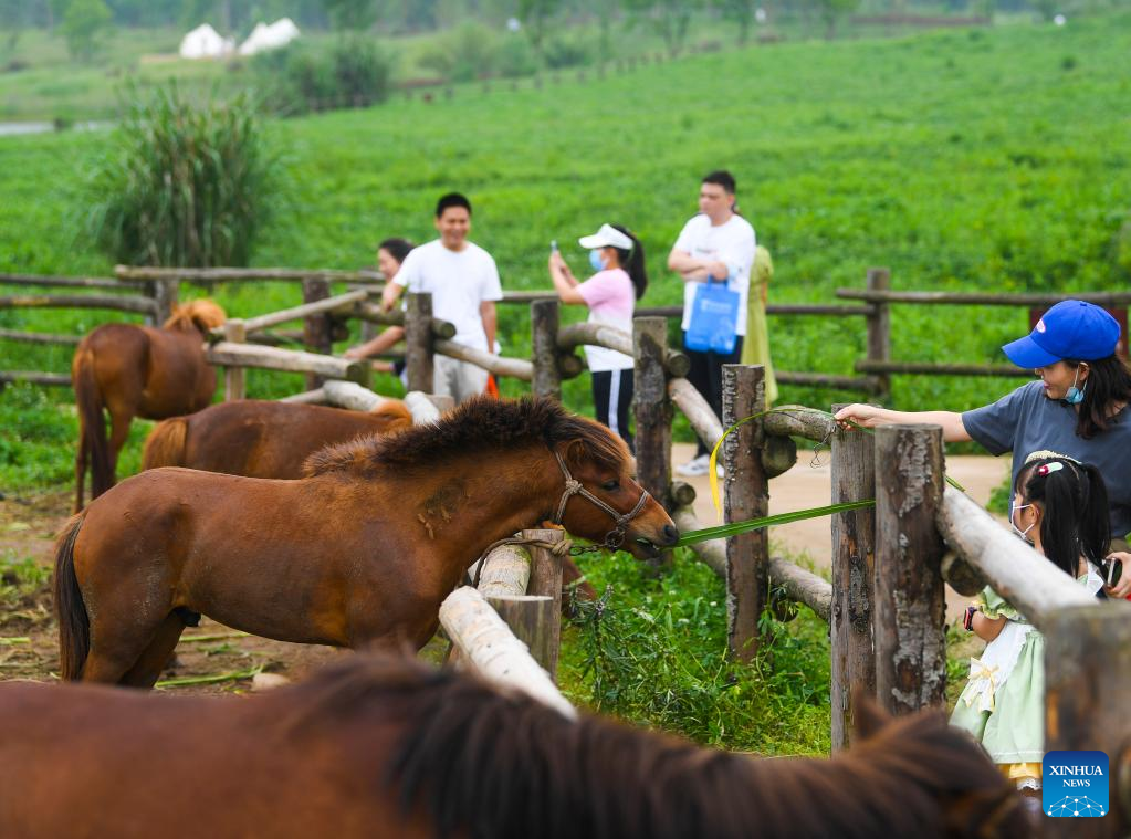 Tourists visit Guangyang Isle in southwest China's Chongqing, June 5, 2022.
