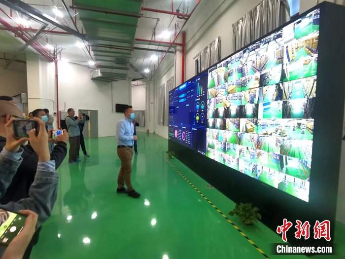 A worker introduces the intelligent warehouse at a white tea trade mart in Zhenghe county, Nanping city, southeast China's Fujian Province. (Chinanews.com/Zheng Jiangluo)