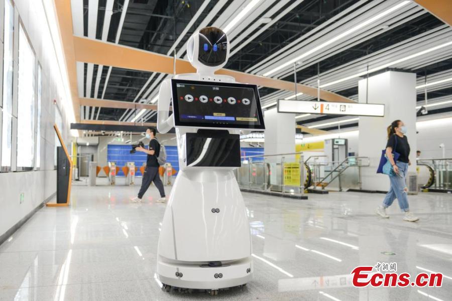 Photo shows a robot guide of the second phase of the CRT Line 4. (Photo: China News Service/He Penglei)