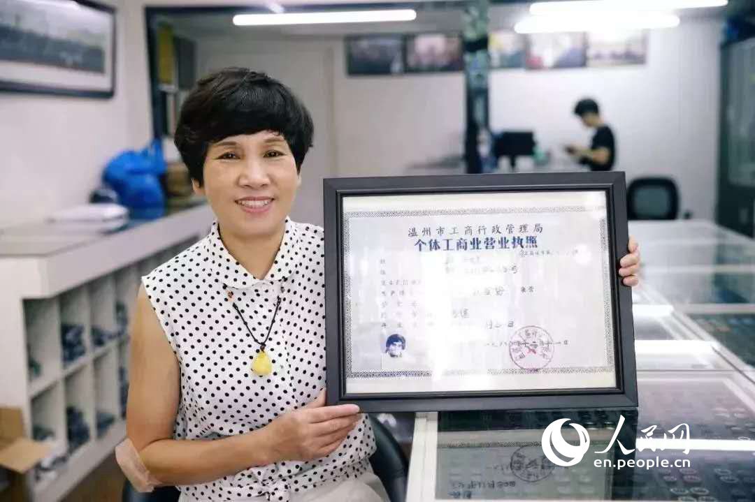 Hearing the news, Zhang quickly applied for a business license by submitting her personal information, two photos and a description of her business. In 1980, she became the first of more than 2,000 vendors in Wenzhou to be approved, and went on thereafter to upgrade her table-shop into a one floor store. The buttons that she sold were now displayed on counters.