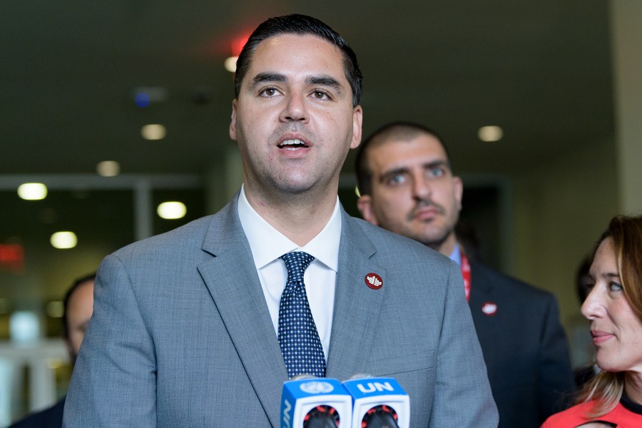 Ian Borg, Maltese minister for foreign and European affairs and trade, briefs reporters after Malta was elected as a non-permanent member of the UN Security Council at the UN headquarters in New York on June 9, 2022. (Manuel Elias/UN Photo/Handout via Xinhua)