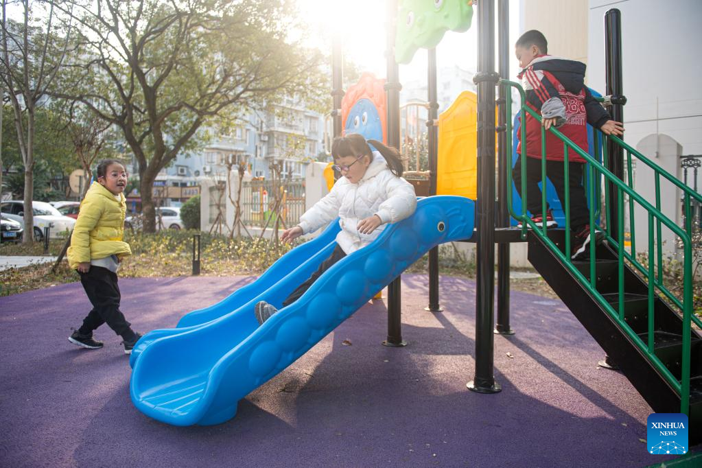 Children play at a renovated residential area in Ningbo, east China's Zhejiang Province, Jan. 18, 2022.(Xinhua/Jiang Han)