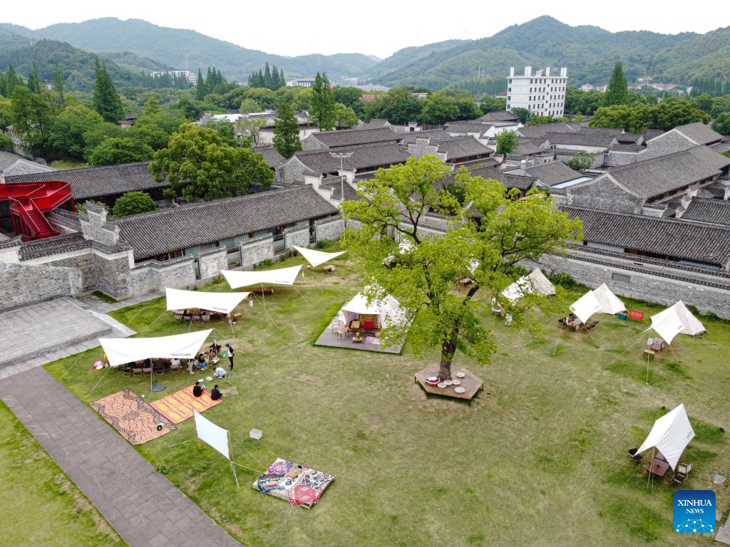 Aerial photo taken on May 19, 2022 shows a camping area in Ningbo, east China's Zhejiang Province.(Xinhua/Jiang Han)