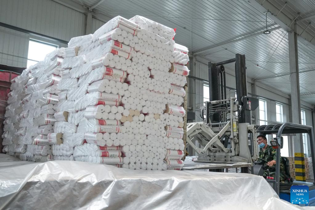 A staff member loads packs of fine dried noodles onto trucks at a wheat processing plant in Woyang County of Bozhou City, east China's Anhui Province, June 7, 2022. (Xinhua/Du Yu)