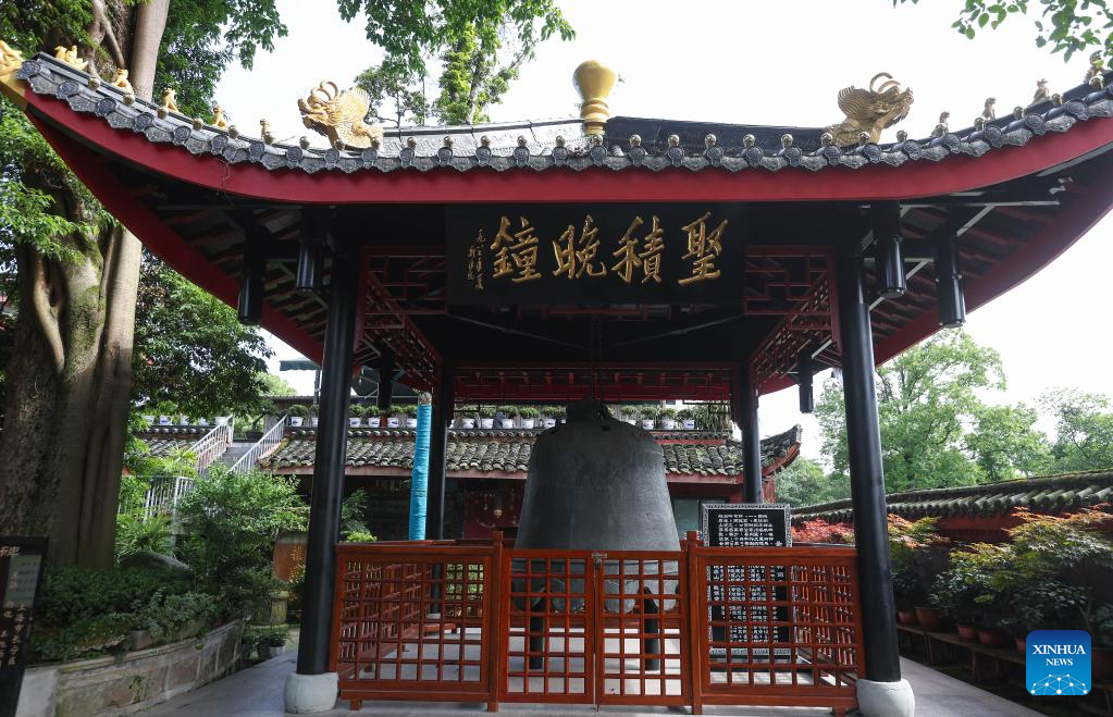 Photo taken on June 7, 2022 shows an ancient bell at Mount Emei in southwest China's Sichuan Province.
