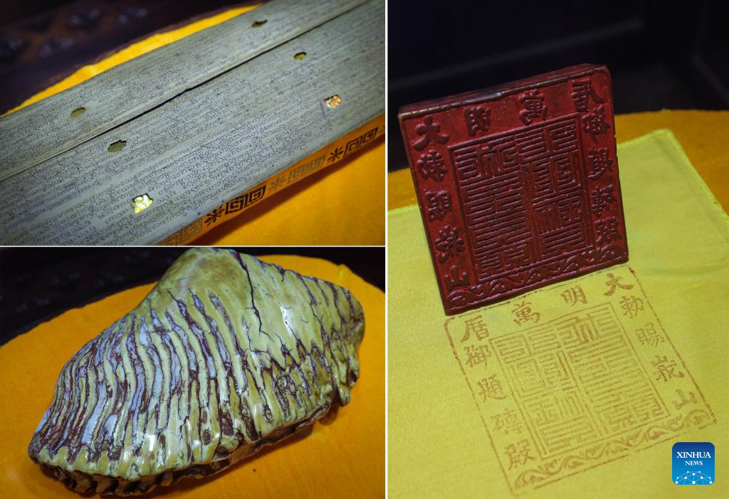 Combo photo shows cultural relics of Mount Emei in southwest China's Sichuan Province, June 6, 2022.
