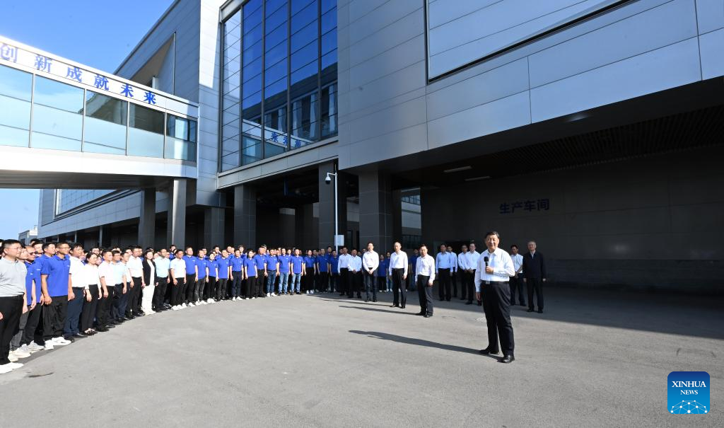 Chinese President Xi Jinping, also general secretary of the Communist Party of China Central Committee and chairman of the Central Military Commission, talks with staff members while visiting XGIMI optoelectronic company in Yibin, southwest China's Sichuan Province, June 8, 2022. Xi made an inspection tour of southwest China's Sichuan Province on Wednesday. (Xinhua/Li Xueren)