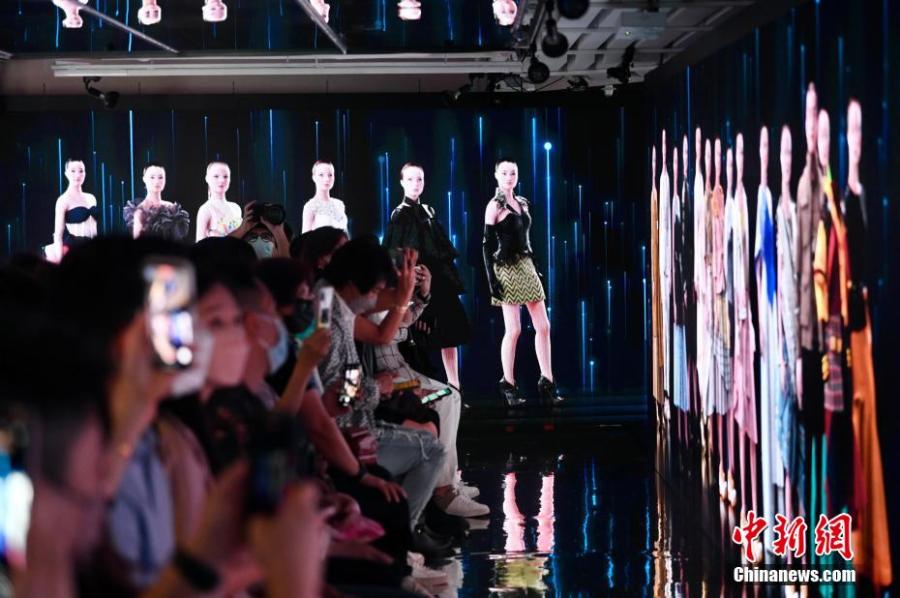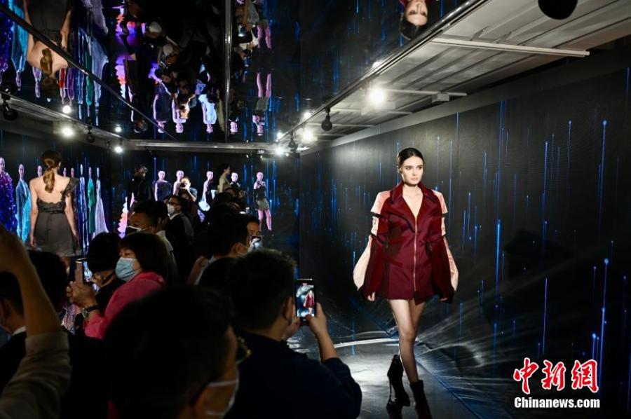 The Fashion Show is presented using a mix of digital virtual installations at the fashion show in Central, Hong Kong, June 9, 2022. (Photo: China News Service/Li Zhihua)