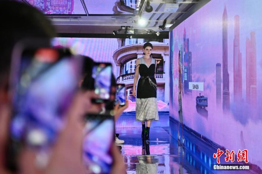Organized by Hong Kong Fashion Designers Association, sponsored by Create Hong Kong of the Government of the Hong Kong Special Administrative Region (HKSAR), the Juxtaposed 2022 FASHION META, was held in celebration of the 25th Anniversary of the Establishment of the HKSAR. (Photo: China News Service/Li Zhihua)