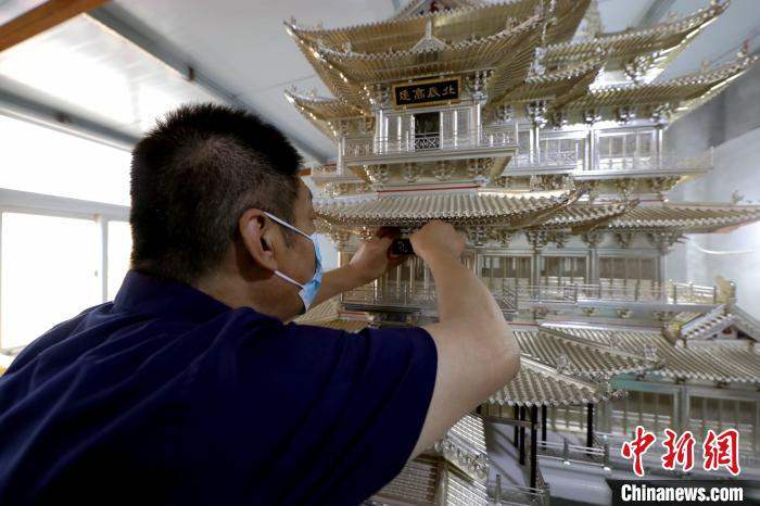 Qian, who runs a studio in Qiantun village, Xianghe county, Hebei Province, spent five years on the artwork and finished it in recent days. He created the model using all of the traditional craft techniques he has learned over the past three decades, including filigree inlay and ancient building model making techniques.