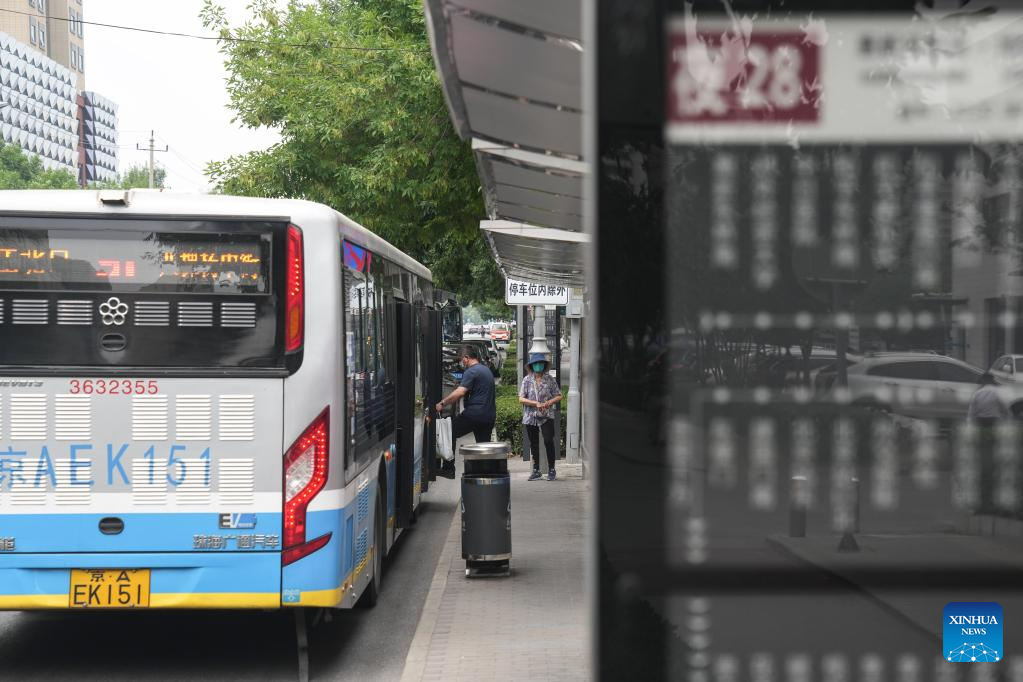 A citizen gets on a bus in Fengtai District, Beijing, capital of China, June 9, 2022.(Xinhua/Peng Ziyang)