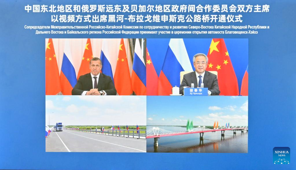 Hu made the remarks while addressing the ceremony marking the opening of the Heihe-Blagoveshchensk cross-border highway bridge via video link.