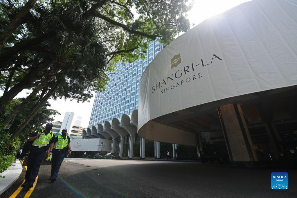 Policemen carry out their duties for the 19th Shangri-La Dialogue in Singapore on June 10, 2022. The 19th Shangri-La Dialogue is to be held here from Friday to Sunday. (Photo by Then Chih Wey/Xinhua)