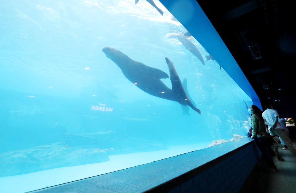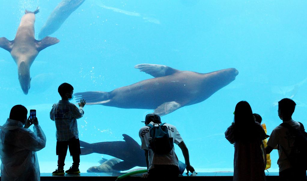 Tourists visit the Shanghai Haichang Ocean Park in east China's Shanghai, June 12, 2022.