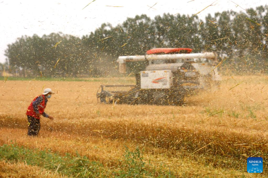 Farmers reap winter wheat in Gaomiaoli Village, east China's Shandong (4)