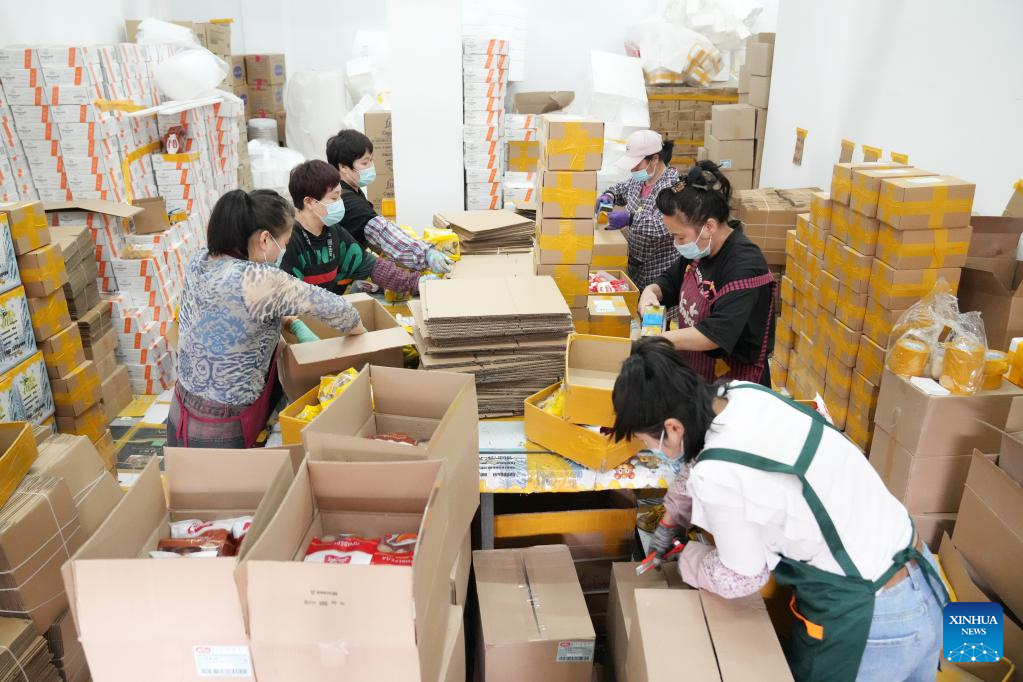 Employees pack goods for delivery at Suifenhe Area of China (Heilongjiang) Pilot Free Trade Zone, June 10, 2022. (Xinhua/Wang Jianwei)