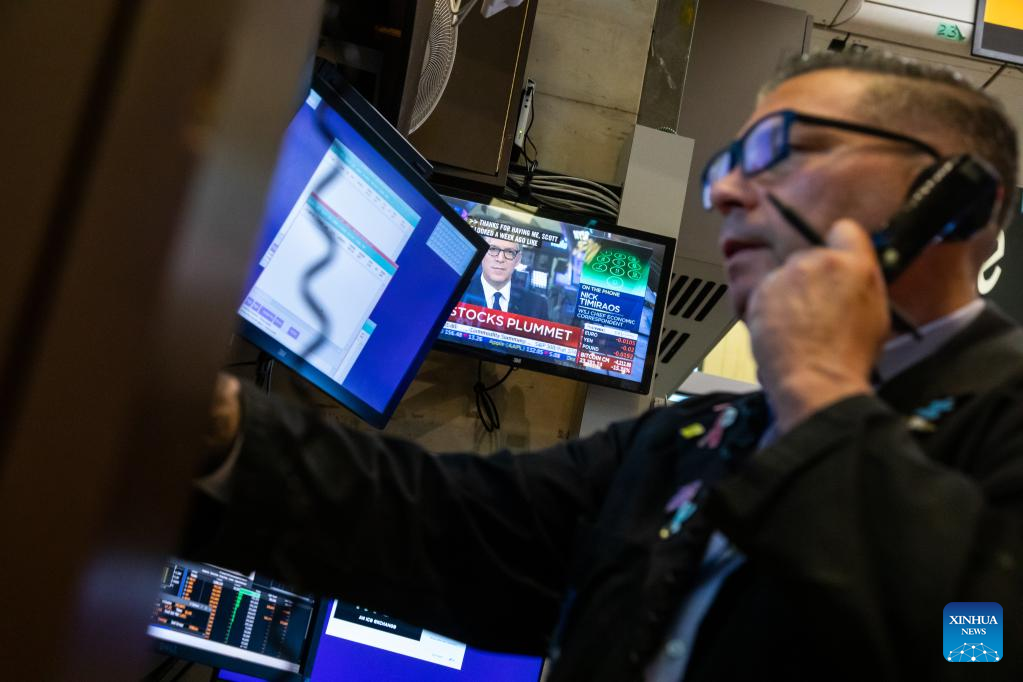 A trader works at the New York Stock Exchange (NYSE) in New York, the United States, June 13, 2022. U.S. stocks fell sharply on Monday as investors continued to dump risky assets amid surging inflation.