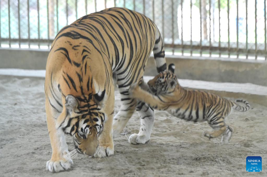 A Bengal tiger cub is seen with its mother at the Bangladesh National Zoo in Dhaka, Bangladesh, June 13, 2022.