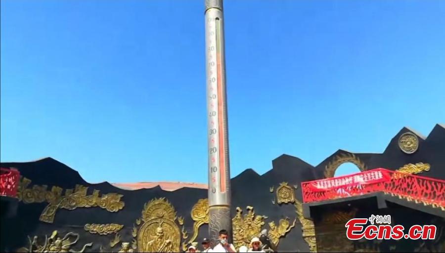 The surface temperature in the scenic spot of the Huoyan (Flaming) Mountain reached 80 degrees Celsius on Monday.