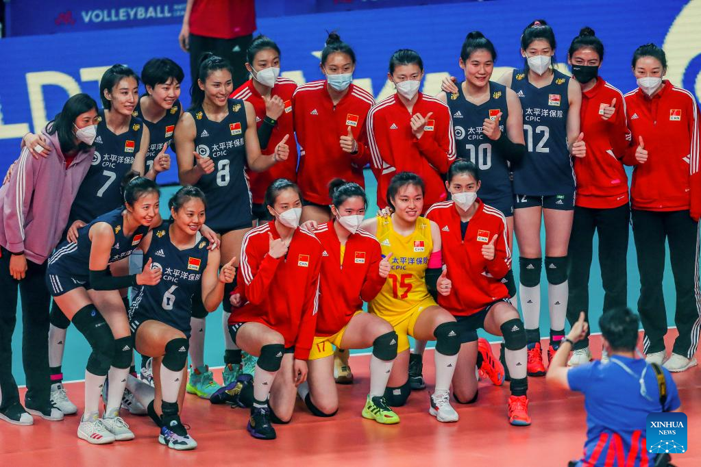 MANILA, June 15 (Xinhua) -- China's national women's volleyball team beat Belgium in straight sets 25-19, 25-22, 25-14 on Wednesday in Pool 4 of the 2022 FIVB Volleyball Nations League (VNL) in the Philippines.