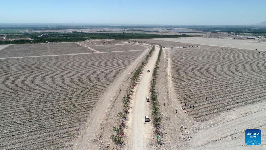 Aerial photo taken on June 14, 2022 shows the construction site of the Turandot Winery Town project in Yinchuan, northwest China's Ningxia Hui Autonomous Region.