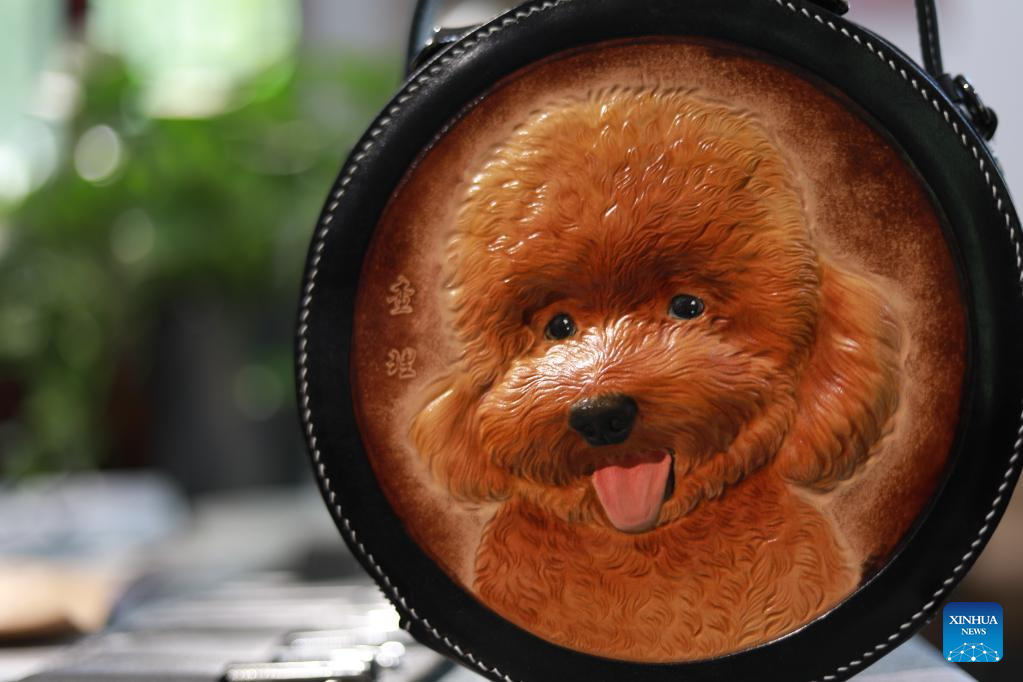Wu, 34, has been focused on creating tailor-made leather objects carved with images of deceased pets. He is an inheritor of the intangible cultural heritage of Lianchi District, Baoding city, north China's Hebei Province.