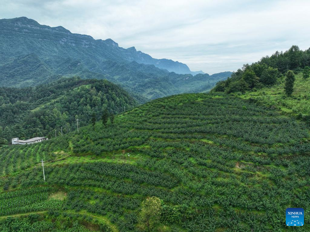 Local authorities have been committed to planting Sichuan pepper, a cash crop highly adaptable to areas of rocky desertification, as a way to boost local economy and drive rural revitalization. The total area of Sichuan pepper plantation now stands at 225,000 mu (about 15,000 hectares) in the county. (Photo by Luo Xinghan/Xinhua)