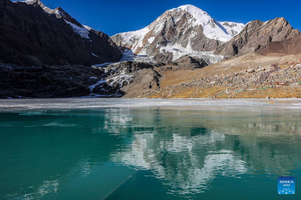Photo taken with a mobile phone on Jan. 15, 2021 shows Purog Kangri glacier in Nagqu, southwest China's Tibet Autonomous Region. (Xinhua/Shen Hongbing)