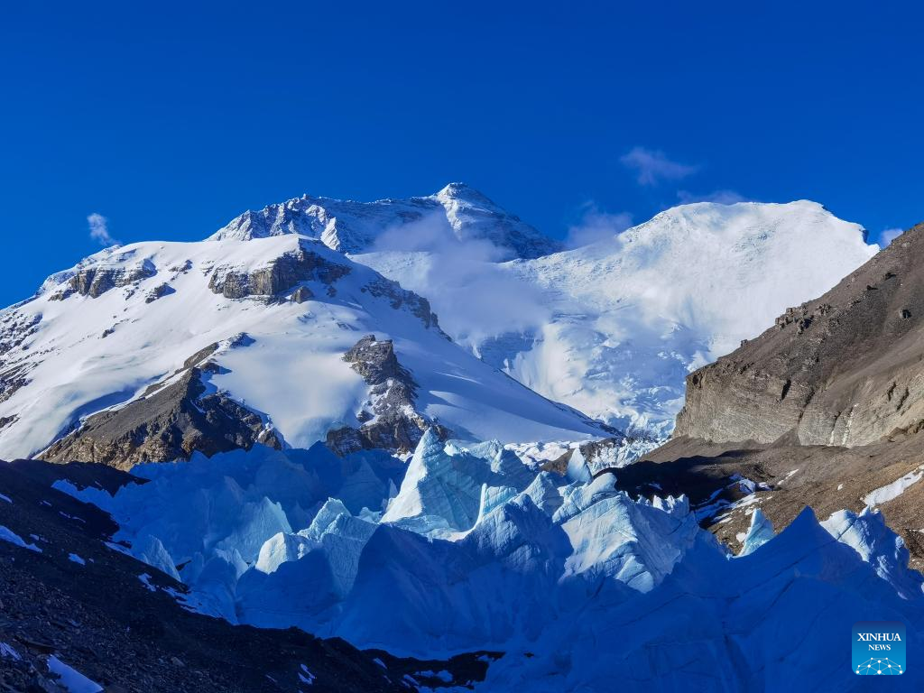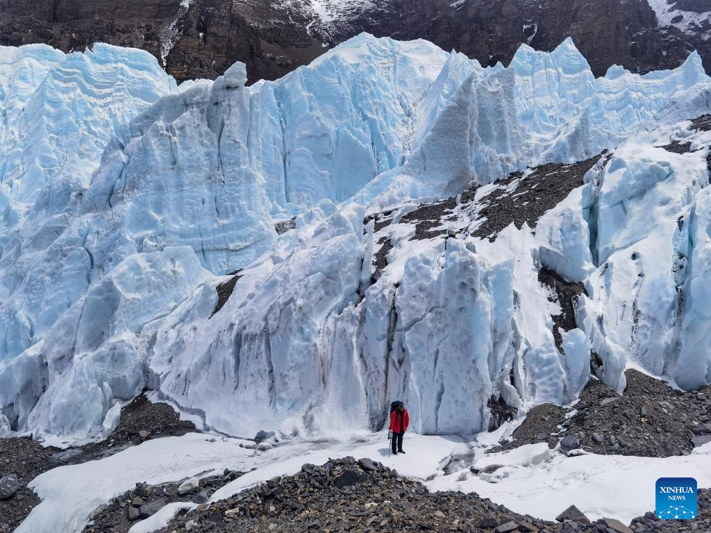 Photo taken with a mobile phone on May 6, 2022 shows the Rongbuk glacier at the foot of Mount Qomolangma, southwest China's Tibet Autonomous Region. (Photo by Kang Shichang/Xinhua)