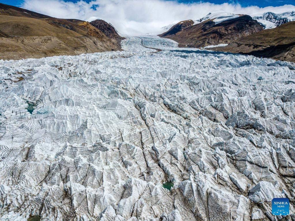Aerial photo taken on June 18, 2019 shows Purog Kangri glacier in Nagqu, southwest China's Tibet Autonomous Region. (Xinhua/Jiang Fan)