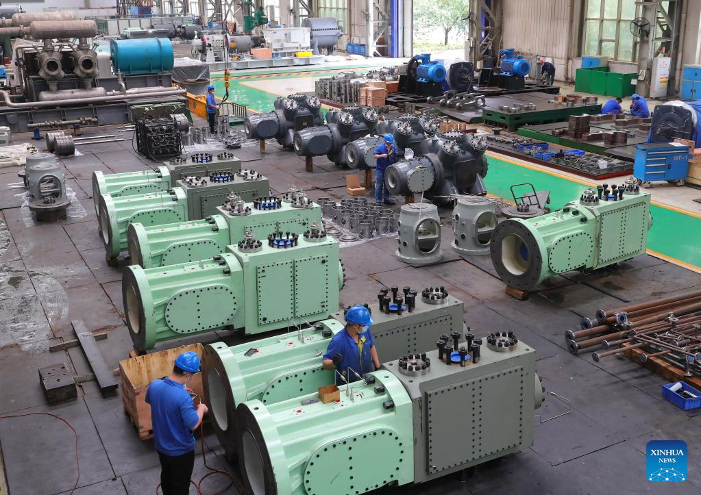 Staff members of Shenyang Blower Works Group Corporation (SBW) work at an assembly factory in Shenyang, northeast China's Liaoning Province, June 13, 2022.