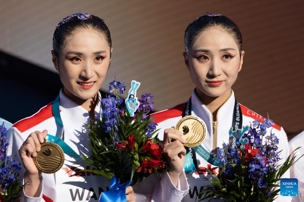 BUDAPEST, June 19 (Xinhua) -- China's pair Wang Liuyi and Wang Qianyi clinched the title in the women's duet technical in artistic swimming at the 19th FINA World Championships here on Sunday.
