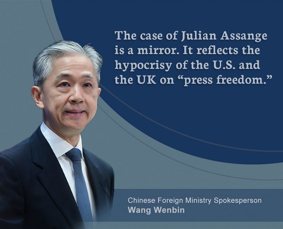 "Assange's case is like a mirror, which reflects the hypocrisy of the U.S. and the UK on 'press freedom'," Wang said.