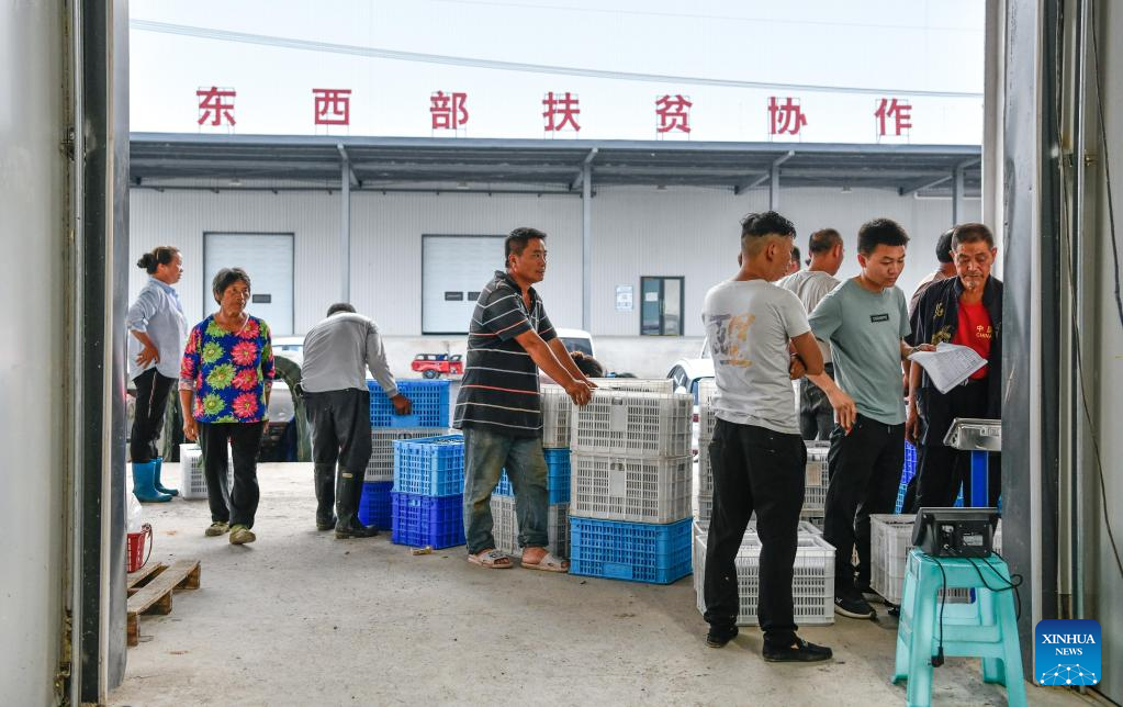 Villagers wait to weigh blueberries at a blueberry trade center in Majiang County, southwest China's Guizhou Province, June 18, 2022. More than 80,000 mu (about 5,333 hectares) of blueberries have entered harvest season in Majiang County of Guizhou, and the blueberry products are being sold to the rest of the country via online orders. (Xinhua/Yang Wenbin)