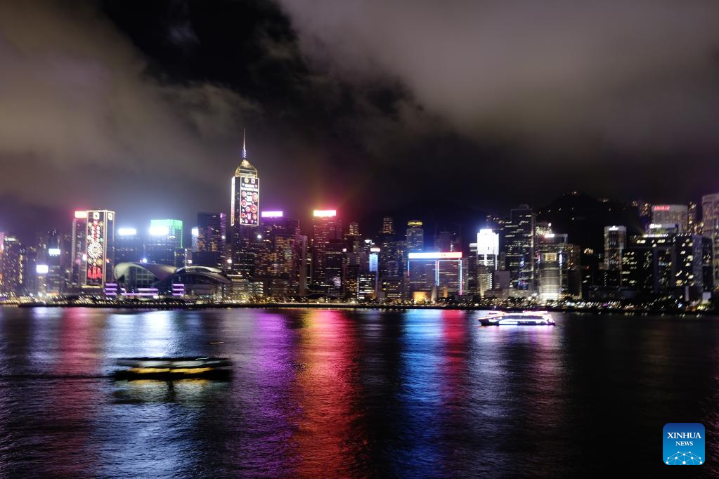 Photo taken on June 20, 2022 shows a night view at Tsim Sha Tsui in Hong Kong, south China.