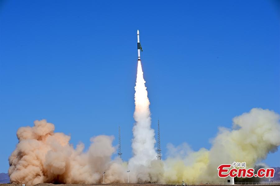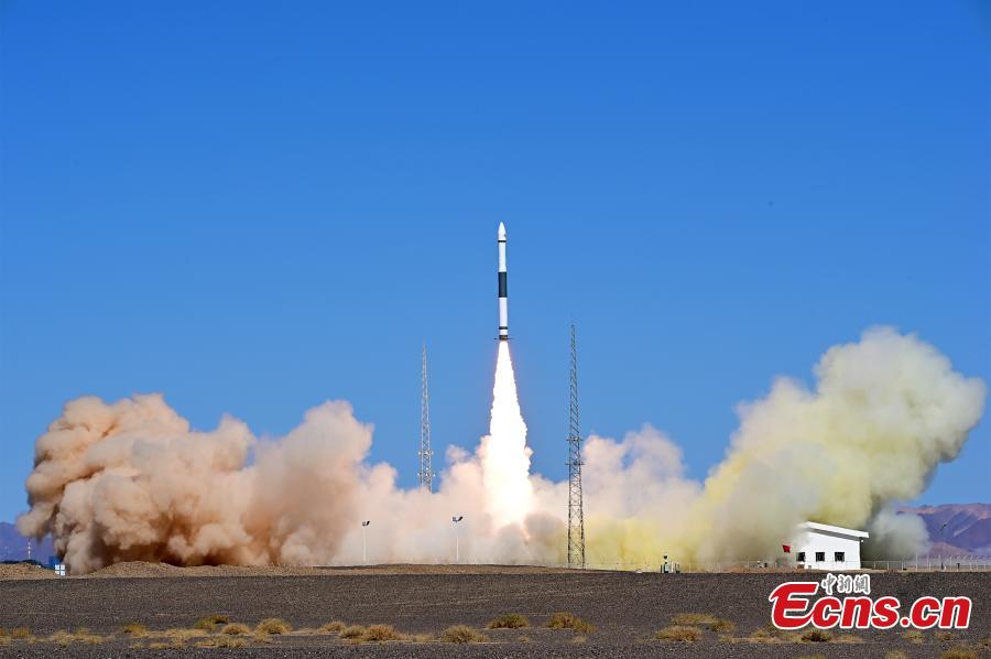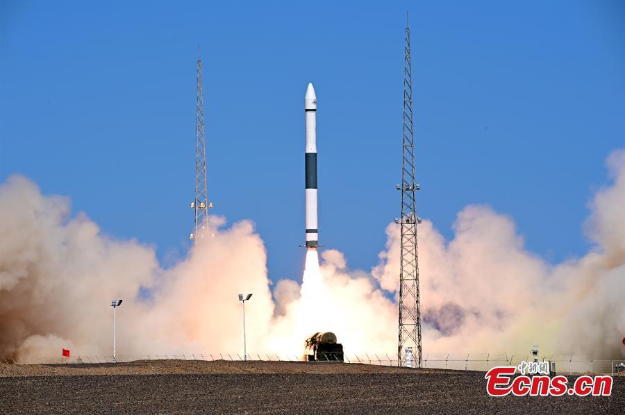A Kuaizhou-1A carrier rocket carrying the Tianxing-1 test satellite blasts off from the Jiuquan Satellite Launch Center in northwest China, June 22, 2022. (Photo: China News Service/Wang Jiangbo)