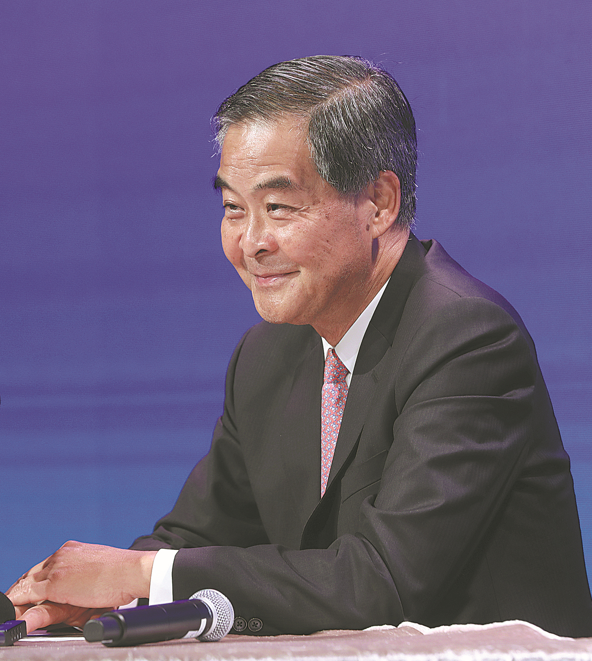 Leung Chun-ying, former chief executive of the Hong Kong Special Administrative Region, speaks during an interview with media in Hong Kong on June 6. [ZOU HONG/CHINA DAILY]