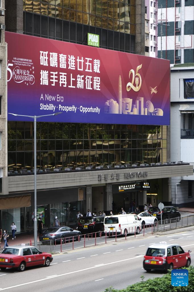 Celebratory billboards are seen in Hong Kong, south China, June 22, 2022.