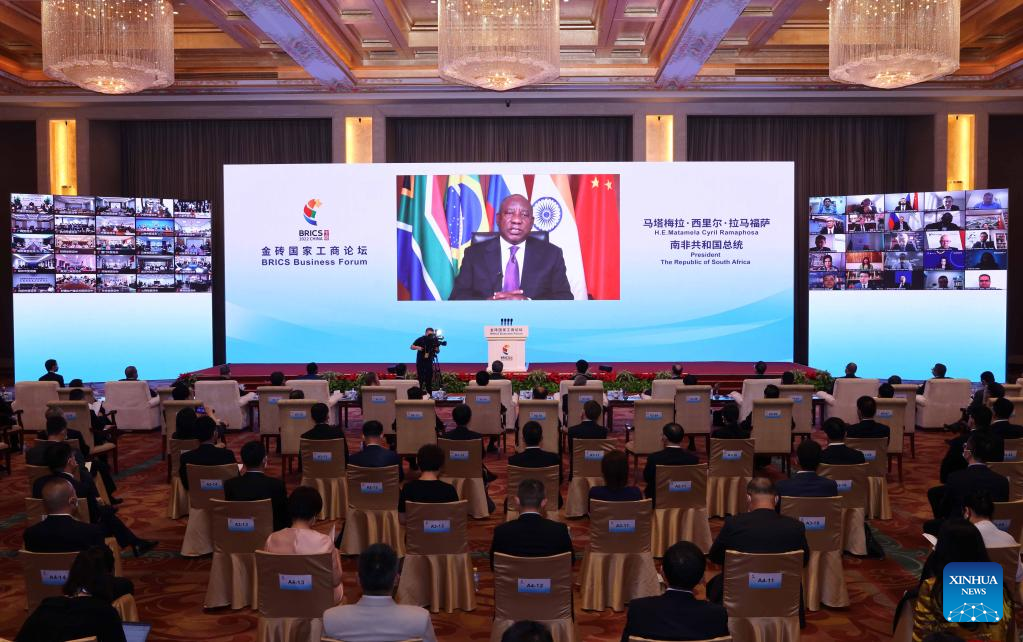 South African President Cyril Ramaphosa addresses the opening ceremony of the BRICS Business Forum in virtual format, June 22, 2022. (Xinhua/Yin Gang)