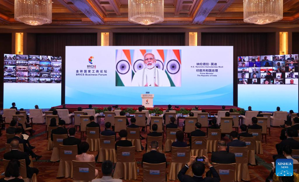 Indian Prime Minister Narendra Modi addresses the opening ceremony of the BRICS Business Forum in virtual format, June 22, 2022. (Xinhua/Yin Gang)