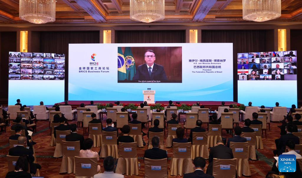 Brazilian President Jair Bolsonaro addresses the opening ceremony of the BRICS Business Forum in virtual format, June 22, 2022. (Xinhua/Yin Gang)