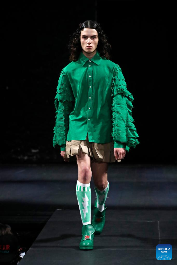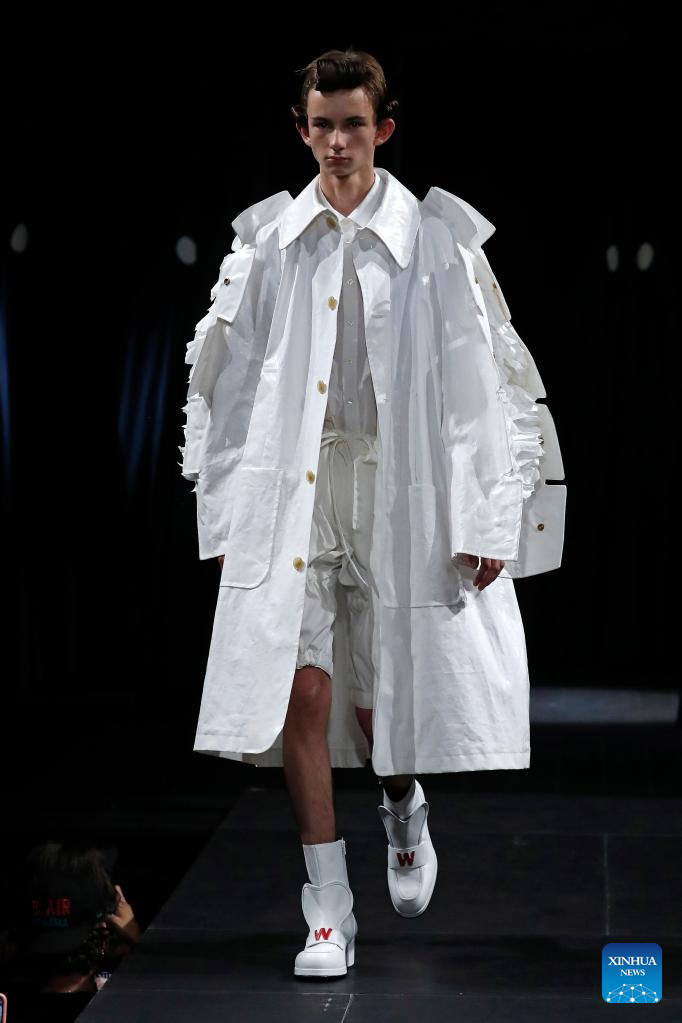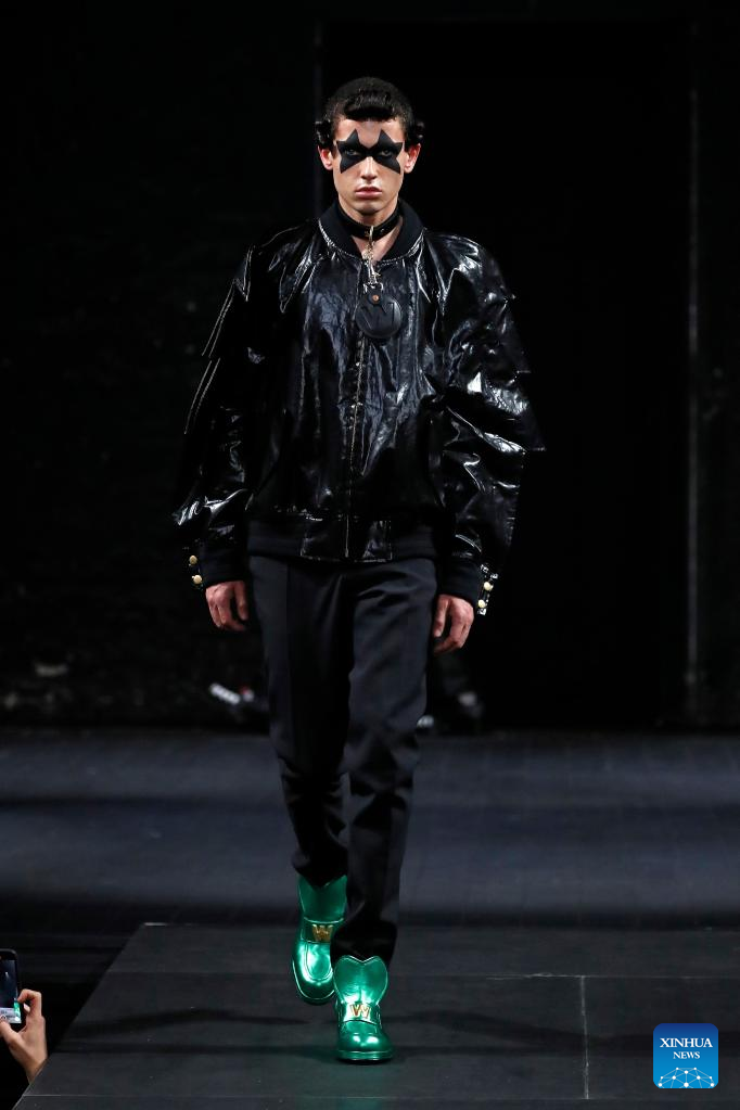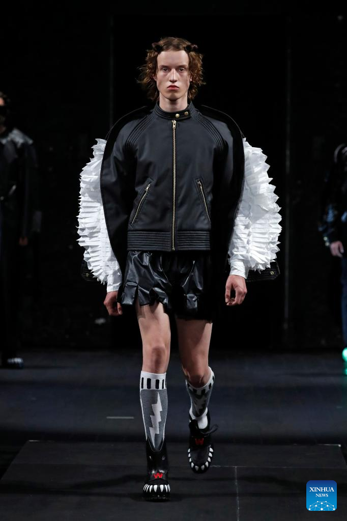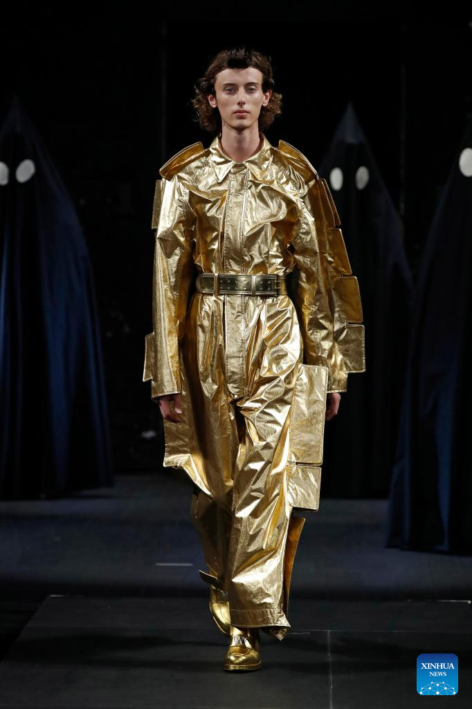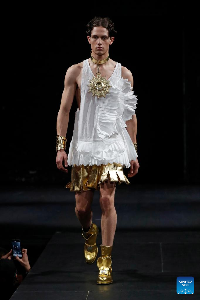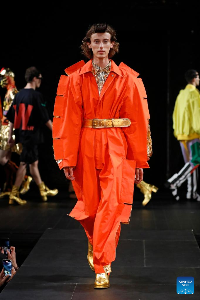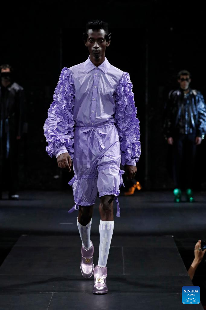 A model presents a creation from the Spring/Summer 2023 Men's collection by Belgian designer Walter Van Beirendonck during the Paris Fashion Week, in Paris, France, on June 22, 2022. (Photo by Piero Biasion/Xinhua)