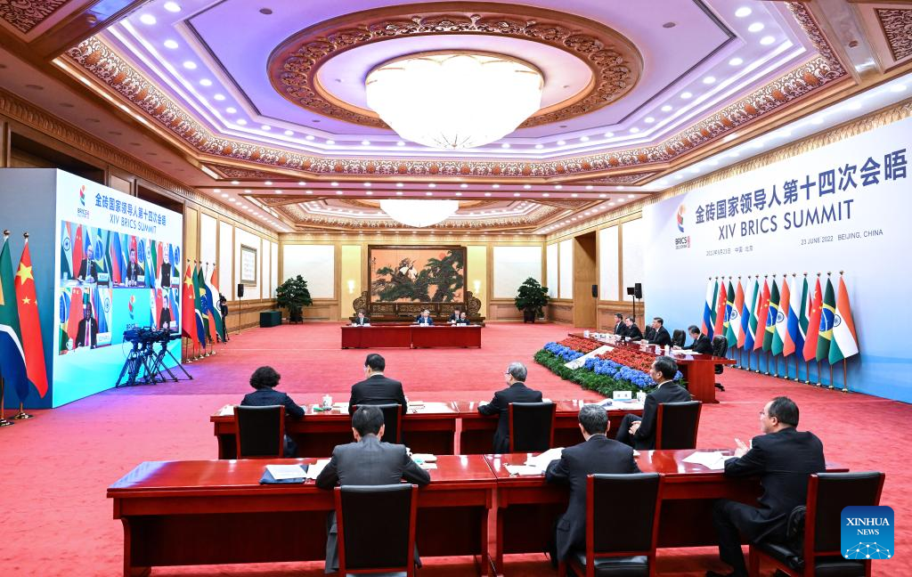 Chinese President Xi Jinping hosts the 14th BRICS Summit via video link in Beijing, capital of China, June 23, 2022.