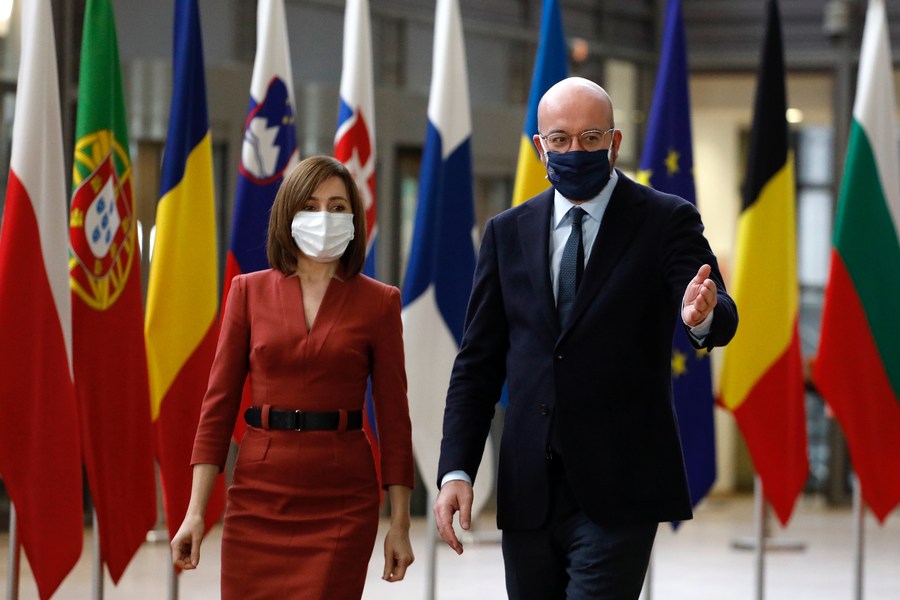 BRUSSELS, June 23 (Xinhua) -- European Union (EU) leaders have accepted Ukraine and Moldova as candidates for membership of the bloc, European Council President Charles Michel said on Thursday.