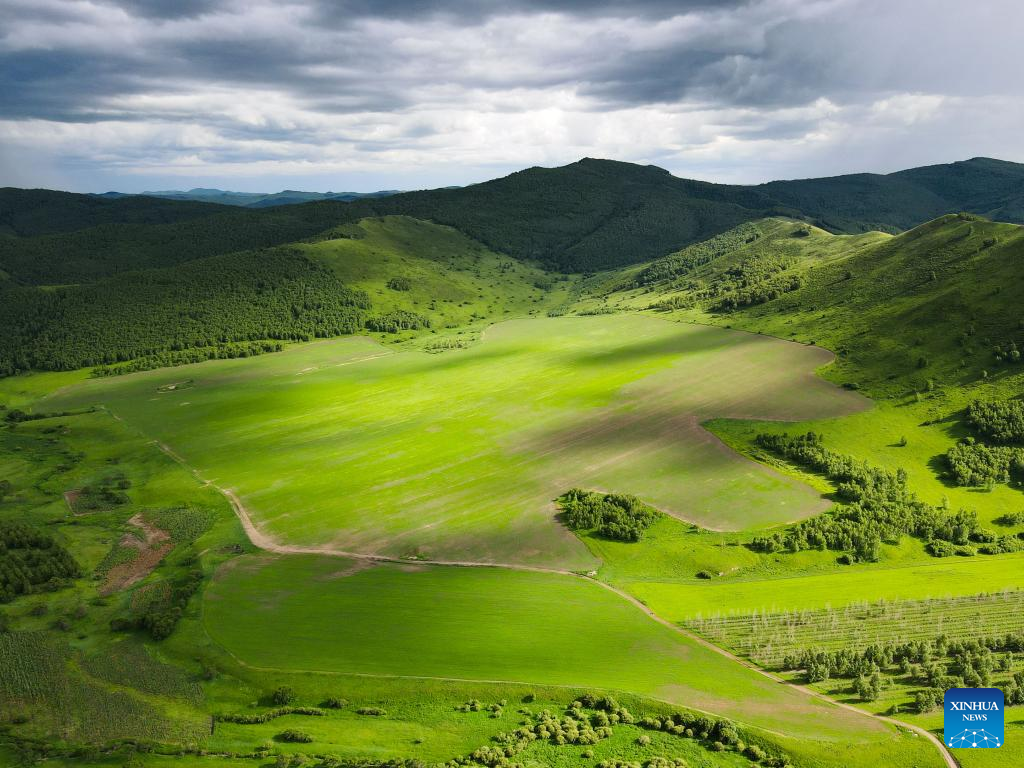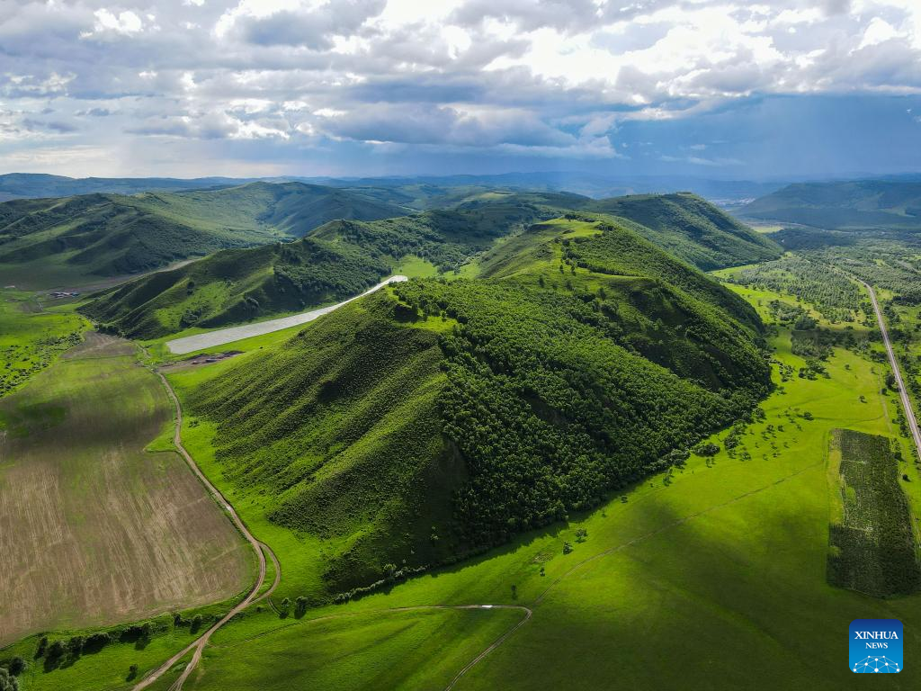 Aerial photo taken on June 23, 2022 shows the scenery in Arxan of Hinggan League, north China's Inner Mongolia Autonomous Region. (Xinhua/Wang Zecong)