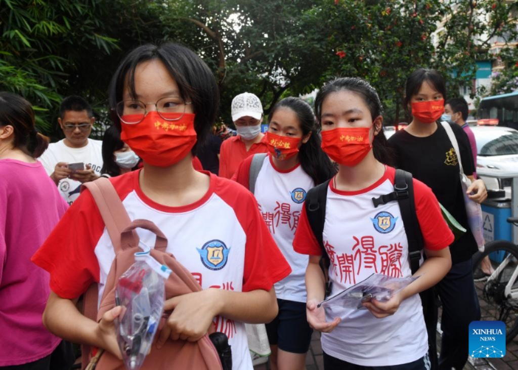 Students enter an exam site of the 2022 senior high school entrance examination in Nanning, capital of south China's Guangxi Zhuang Autonomous Region, June 24, 2022. The 2022 senior high school entrance examination in Guangxi kicked off on Friday. (Xinhua/Lu Boan)