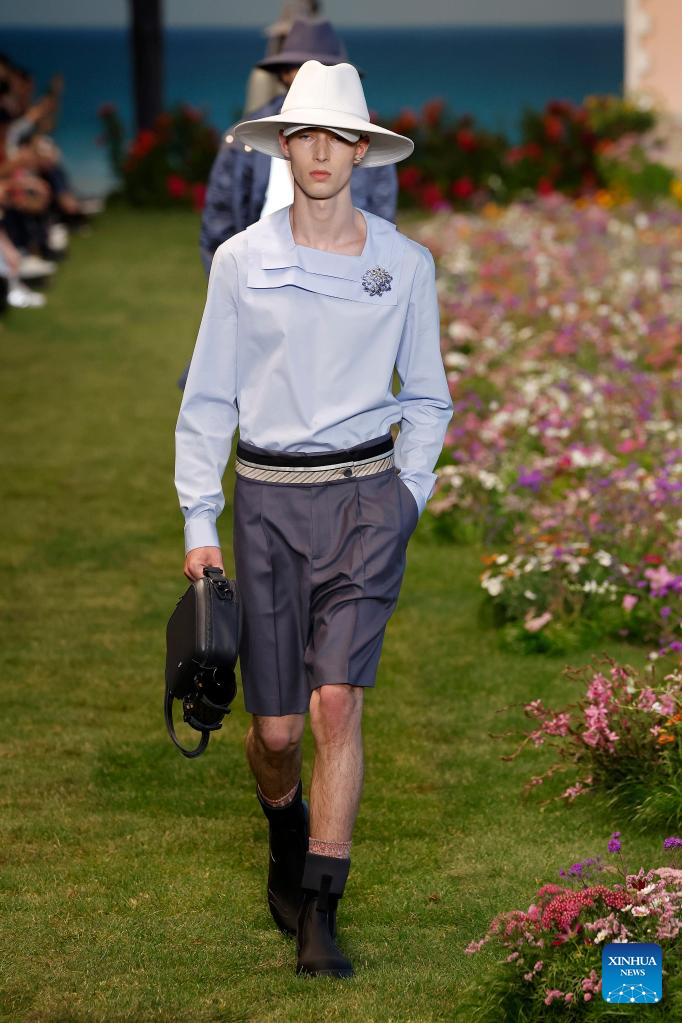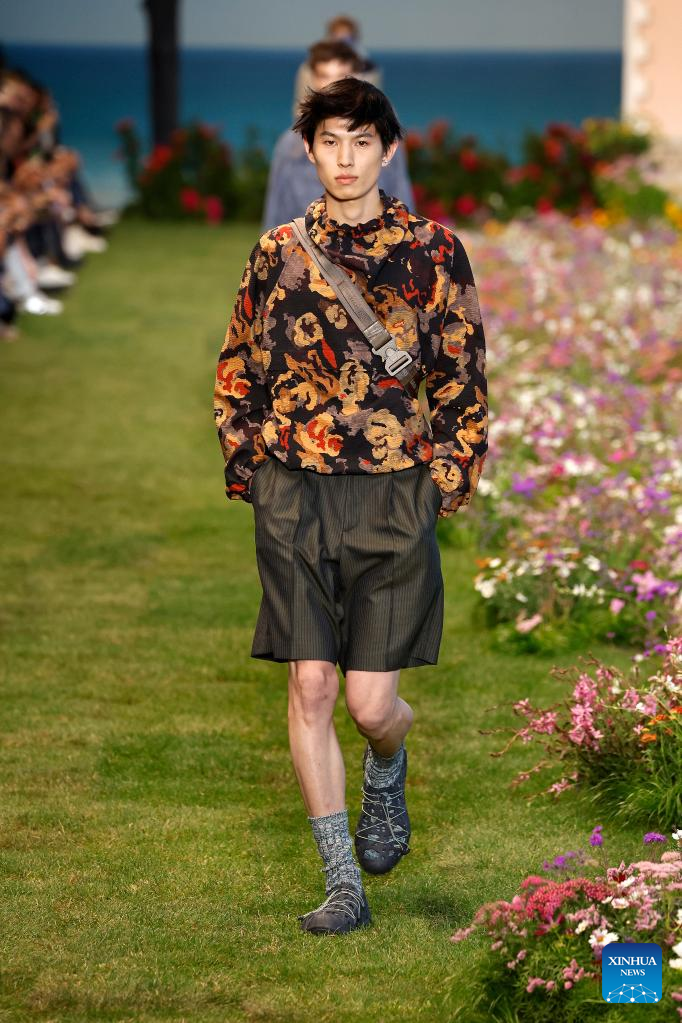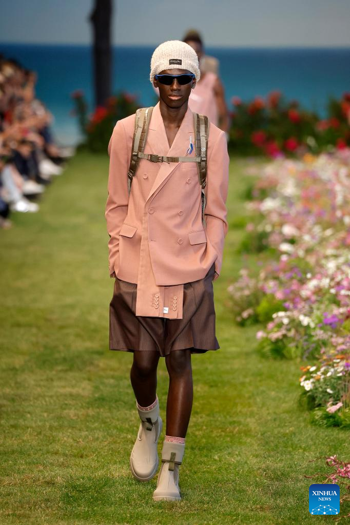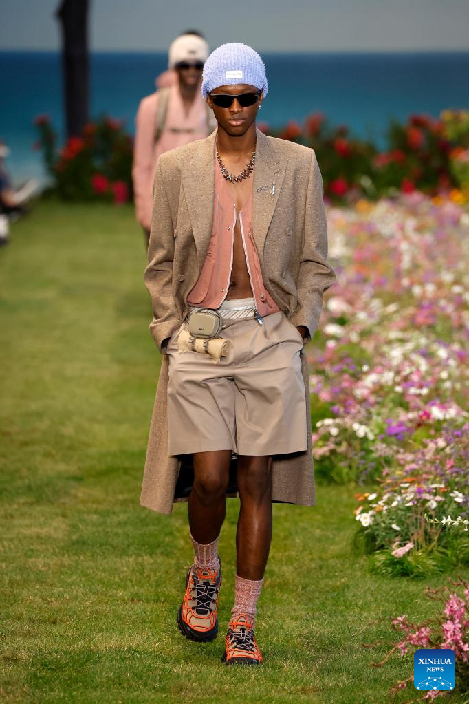A model presents a creation from the Spring/Summer 2023 collection of Dior Homme during the men's fashion week in Paris, France, on June 24, 2022. (Photo by Piero Biasion/Xinhua)