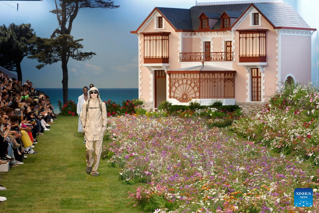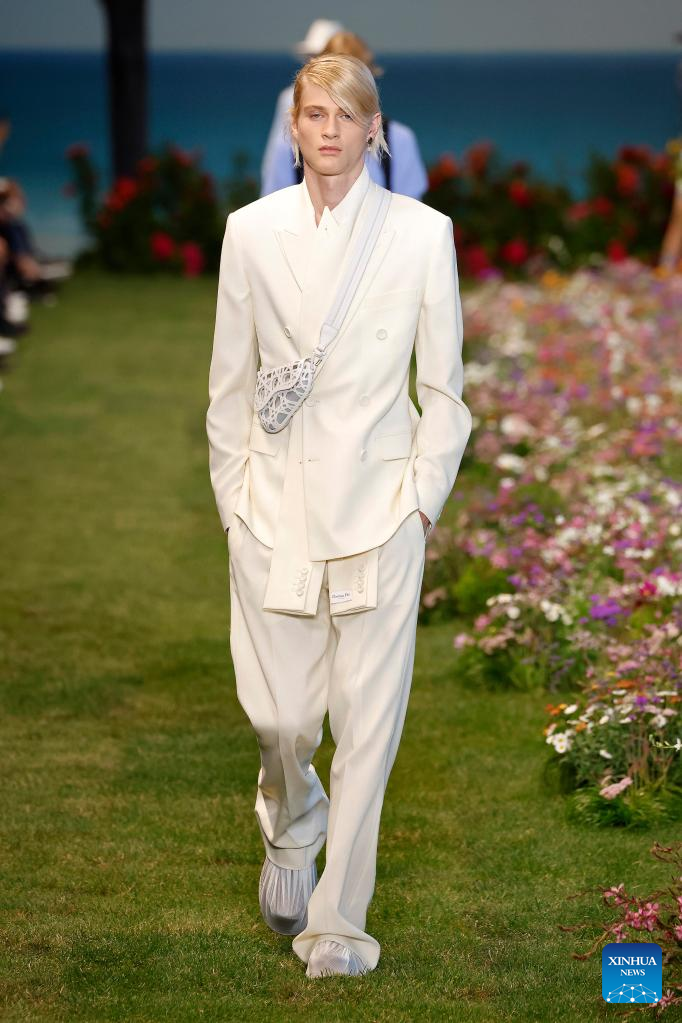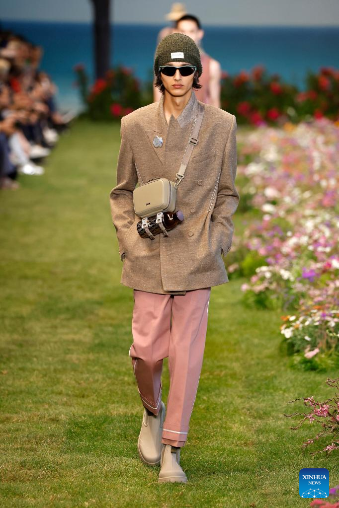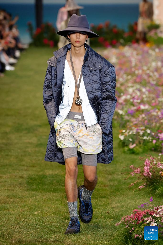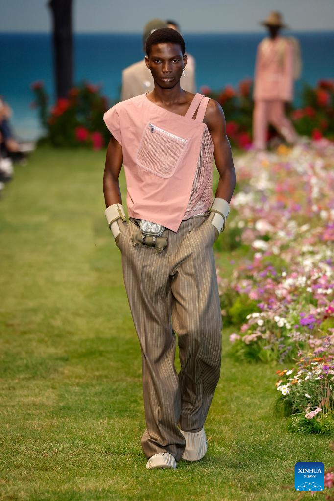 A model presents a creation from the Spring/Summer 2023 collection of Dior Homme during the men's fashion week in Paris, France, on June 24, 2022. (Photo by Piero Biasion/Xinhua)